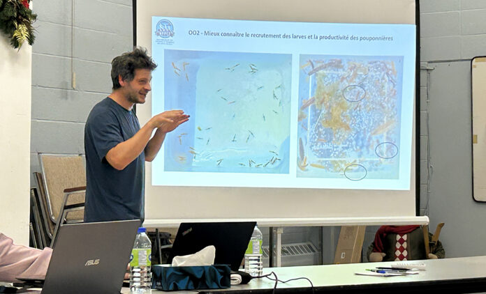 À cet effet, la très grande variation des densités de recrutement du homard selon que l’on se trouve au nord ou au sud de l’aire de distribution de l’espèce, figure parmi les faits saillants que M. Laplante retient des présentations auxquelles il a assisté lors du North American Lobster Science Symposium. Une étude démontre, par exemple, que dans le Maine, on ne compte plus qu’une moyenne de 0,2 post-larve par mètre carré, contre un score optimal moyen de 7 recrues/m² enregistré sur la pointe ouest de l’Île-du-Prince-Édouard. En comparaison, le coordonnateur scientifique du RPPCI rapporte avoir consigné une densité moyenne record de 15 post-larves de stade 5 par mètre carré dans la pouponnière des Demoiselles de la Baie de Plaisance, en 2025. «C’est du jamais vu dans les données historiques des Îles-de-la-Madeleine des 40 dernières années, affirme-t-il. Normalement, on a une moyenne d’une à cinq recrues/m².»